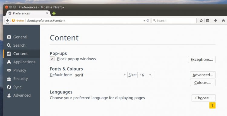 The most notable change rocking up in Firefox 38 for Linux users is a new way of handling Firefox preferences.Falling in line with Google Chrome and Opera, Firefox 38 now displays it preferences/settings in-window, in a new tab. That means no more floating palette to lose under your other windows!